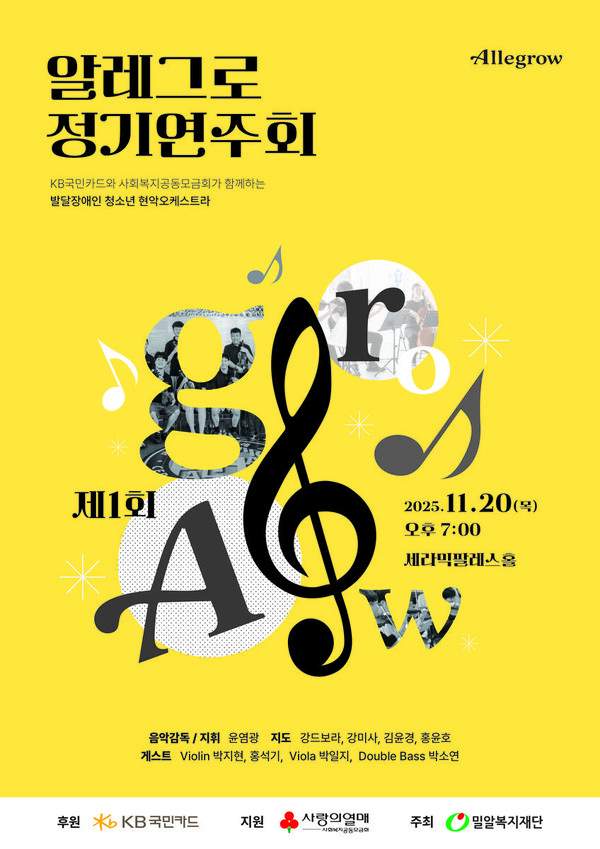 (문화뉴스 주민혜 기자) KB국민카드가 후원하는 발달장애 청소년 현악 오케스트라 'KB 알레그로(AlleGrow)'가 첫 정기연주회를 준비한다.