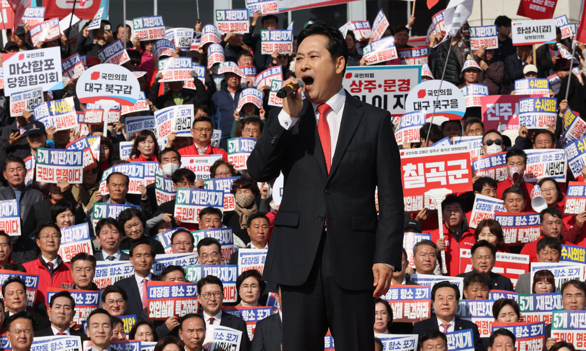 국민의힘 장동혁 대표는 이날 서울 여의도 국회 본청 앞 계단에서 열린 ‘대장동 일당 7400억 국고 환수 촉구 및 검찰 항소포기 외압 규탄대회’에서 “항소 포기의 정점에는 이 대통령이 있다”며 “항소 포기는 이재명을 위한, 정성호(법무부장관)에 의한, 노만석(검찰총장 직무대행)의 항소 포기”라고 말했다.