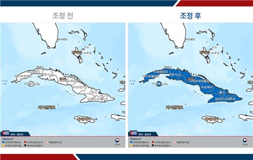 (서울=연합뉴스) 김지헌 기자 = 외교부는 전염병이 확산하는 쿠바 전역에 대해 한국 시각 12일 오후 9시를 기해 여행경보 1단계(여행유의)를 발령한다고 밝혔다.