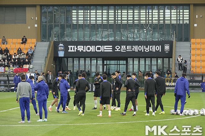 11월 11일 오픈 트레이닝 데이를 진행했던 한국 축구 대표팀 선수들. 사진=이근승 기자 |
