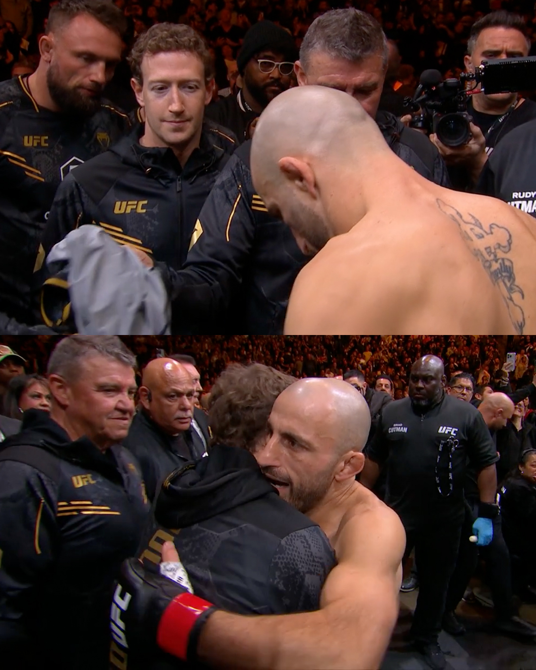 또한 저커버그는 UFC와 긴밀한 관계를 유지하며, UFC 298에서는 볼카노프스키와 옥타곤까지 동행하기도 했다. 경기 관람 땐 화이트 대표와 함께 최전방에서 보기도 했다.