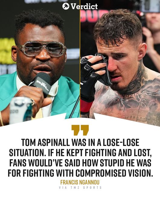 [OSEN=고성환 기자] 전 UFC 헤비급 챔피언 프란시스 은가누(39·카메룬)가 최근 눈을 찔려 경기를 포기한 톰 아스피날(32·영국)을 공개 옹호했다.