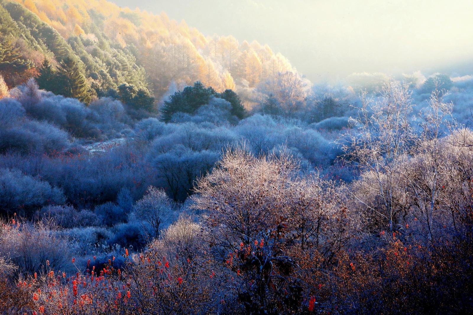12일 오전 강원 인제군 남면 갑둔리 ‘비밀의 정원’에 서리가 내려 아름다운 가을 풍경을 자아내고 있다.