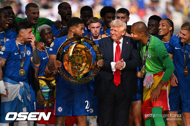 결승전에서 2골 1도움으로 활약한 에이스 콜 파머(23)도 미간을 찌푸렸다. 파머는 당황한 듯 주장 제임스에게 '왜 트럼프 대통령이 아직 단상에 서 있나?'라는 듯한 표정을 짓기도 했다. 선수도 팬도 전에 보지 못했던 생소한 장면을 지켜봐야 했다.