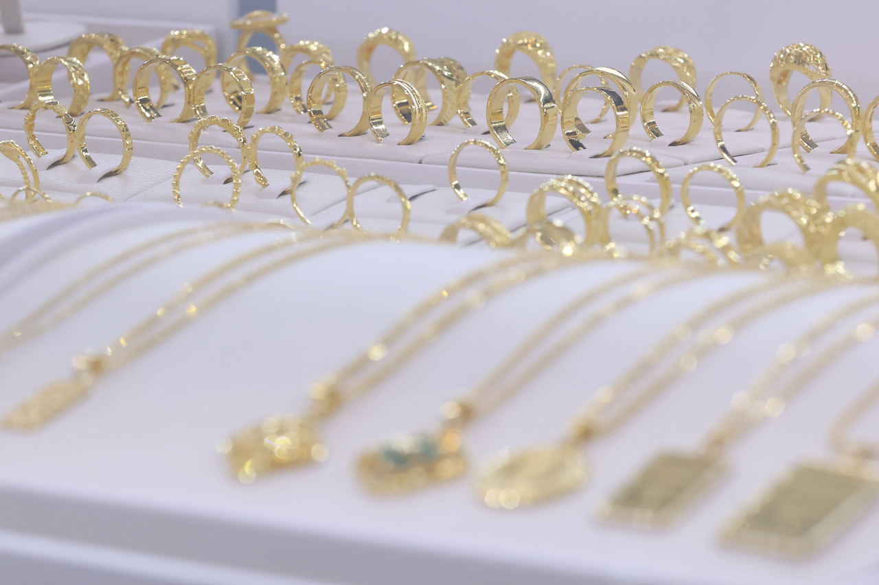 서울 종로구 한국금거래소에 진열된 금 제품 모습. [연합] |