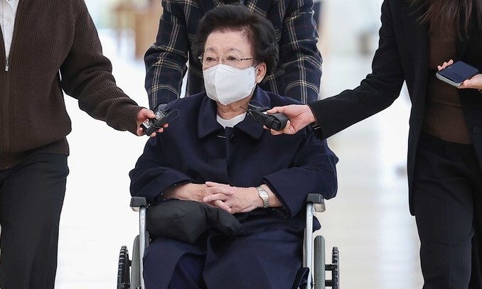이배용 전 국가교육위원장이 13일 서울 광화문 KT 빌딩에 마련된 김건희특검 사무실로 휠체어를 탄 채 출석하고 있다. 연합뉴스 |