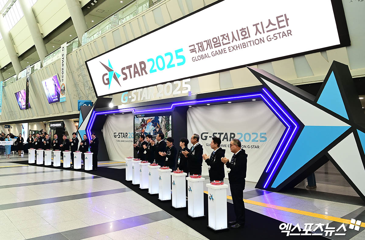 (엑스포츠뉴스 부산, 박지영 기자) 13일 부산광역시 우동 벡스코에서 열린 '지스타(G-STAR) 2025' 개막식에 참석한 내빈들이 인사하고 있다.
