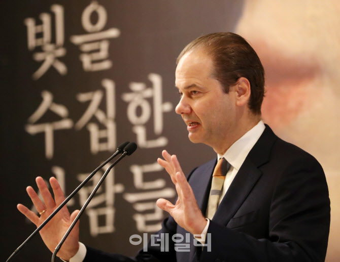[이데일리 김태형 기자] 맥스 홀라인 메트로폴리탄박물관장이 13일 서울 용산구 국립중앙박물관에서 열린 ‘인상주의에서 초기 모더니즘까지, 빛을 수집한 사람들-메트로폴리탄박물관 소장 로버트 리먼 컬렉션’ 개막식에서 인사말을 하고 있다.