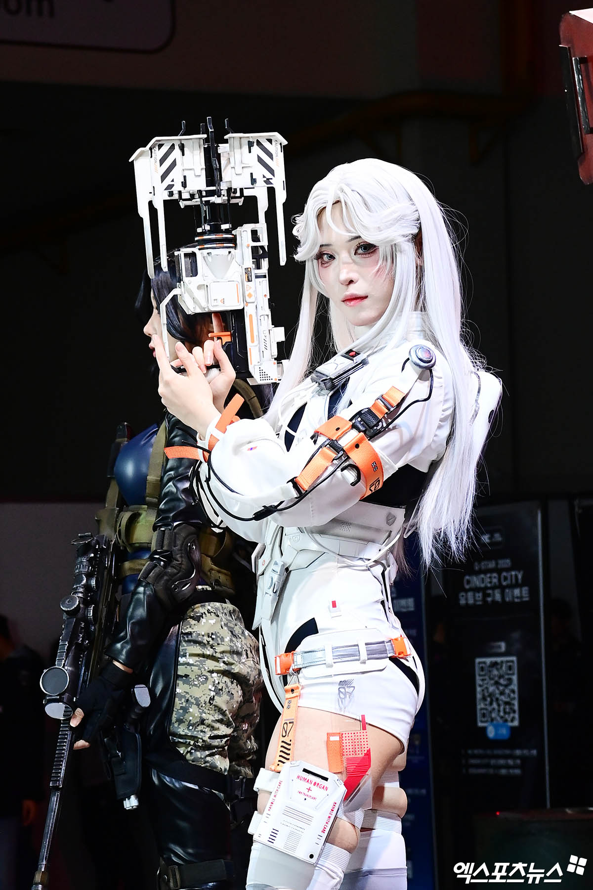 (엑스포츠뉴스 부산, 박지영 기자) 13일 부산광역시 우동 벡스코에서 열린 '지스타(G-STAR) 2025'에 참석한 코스어 시루가 엔씨소프트 부스에서 게임 '신더시티'의 엔젤 코스프레를 선보이고 있다.
