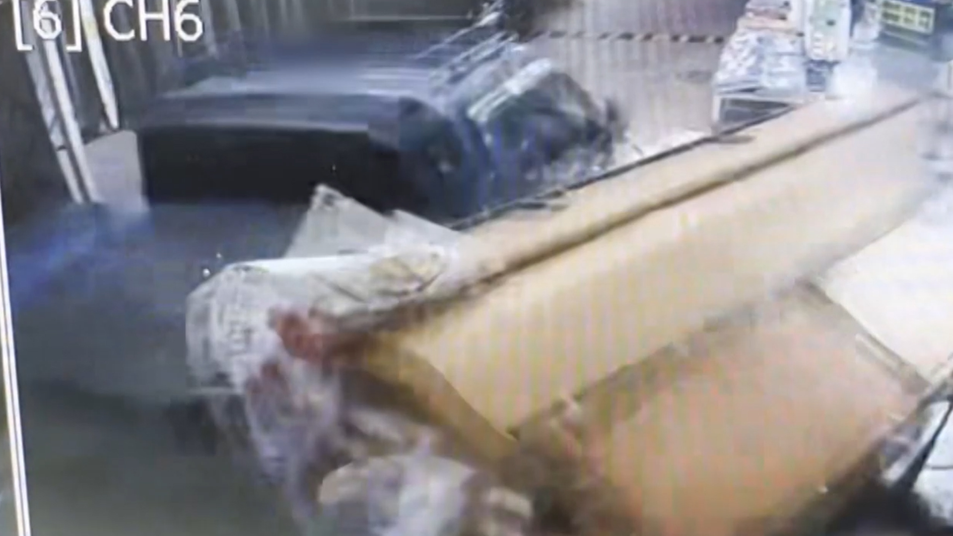 가게 매대와 기기를 부수며 돌진하는 동안에도 트럭은 전혀 제동이 되지 않는 모습입니다.