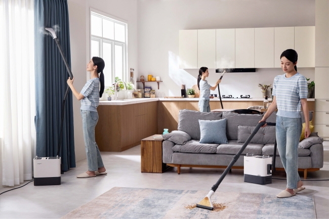‘스팟클린 스팀청소기’는 분당 245g 스팀 분사와 2.5바 고압 분사, 3단계 청소 과정(분사·브러싱·흡입)을 통해 얼룩을 완벽히 제거하며, 저온·고온 스팀, 흡입+세척, 세척+건조 등 4가지 모드로 다양한 직물을 손상 없이 관리할 수 있다. 또한 자가세척 기능, 이중 숨김식 물탱크, 음성 안내, 인체공학적 손잡이 등으로 사용 편의성을 강화했다.
