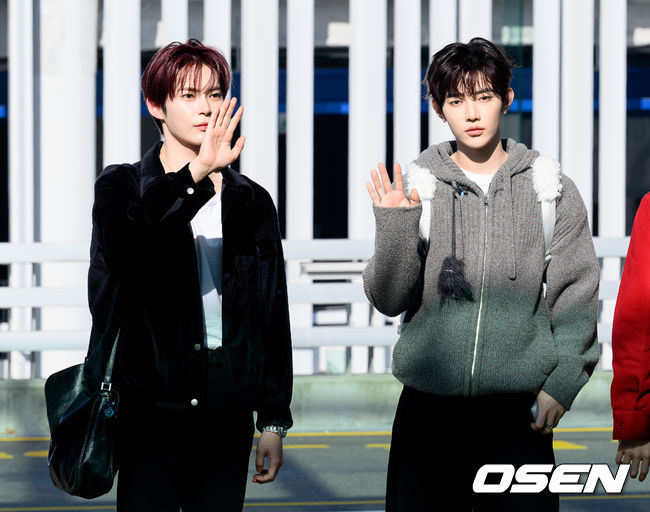 성한빈, 장하오가 출국장으로 향하며 팬과 취재진을 향해 인사를 하고 있다. 2025.11.13 /sunday@osen.co.kr