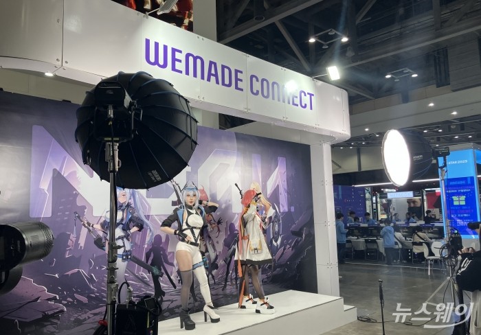 지스타 2025 위메이트커넥트 부스 앞 신작 '노아' 코스프레. 사진=김세현 기자 |