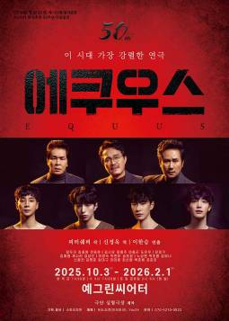 극단 실험극장이 제작한 이 연극은 50년의 전통을 이어오며, 피터 쉐퍼의 세계적인 희곡 <에쿠우스>를 한국 무대에 다시 올렸다. <아마데우스>, <고곤의 선물>로 잘 알려진 작가의 대표작으로, 인간 내면의 원시적 욕망과 사회 구조에 대한 질문을 던진다.
