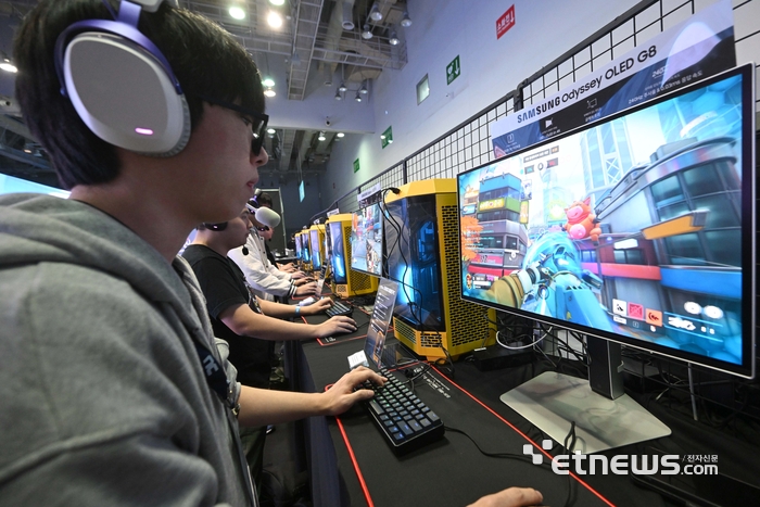한국게임산업협회가 주최하고 지스타조직위원회, 부산정보산업진흥원이 주관한 국제게임전시회 지스타 2025가 13일 부산 해운대구 벡스코에서 열렸다. 관람객이 오버워치2 게임을 체험하고 있다.