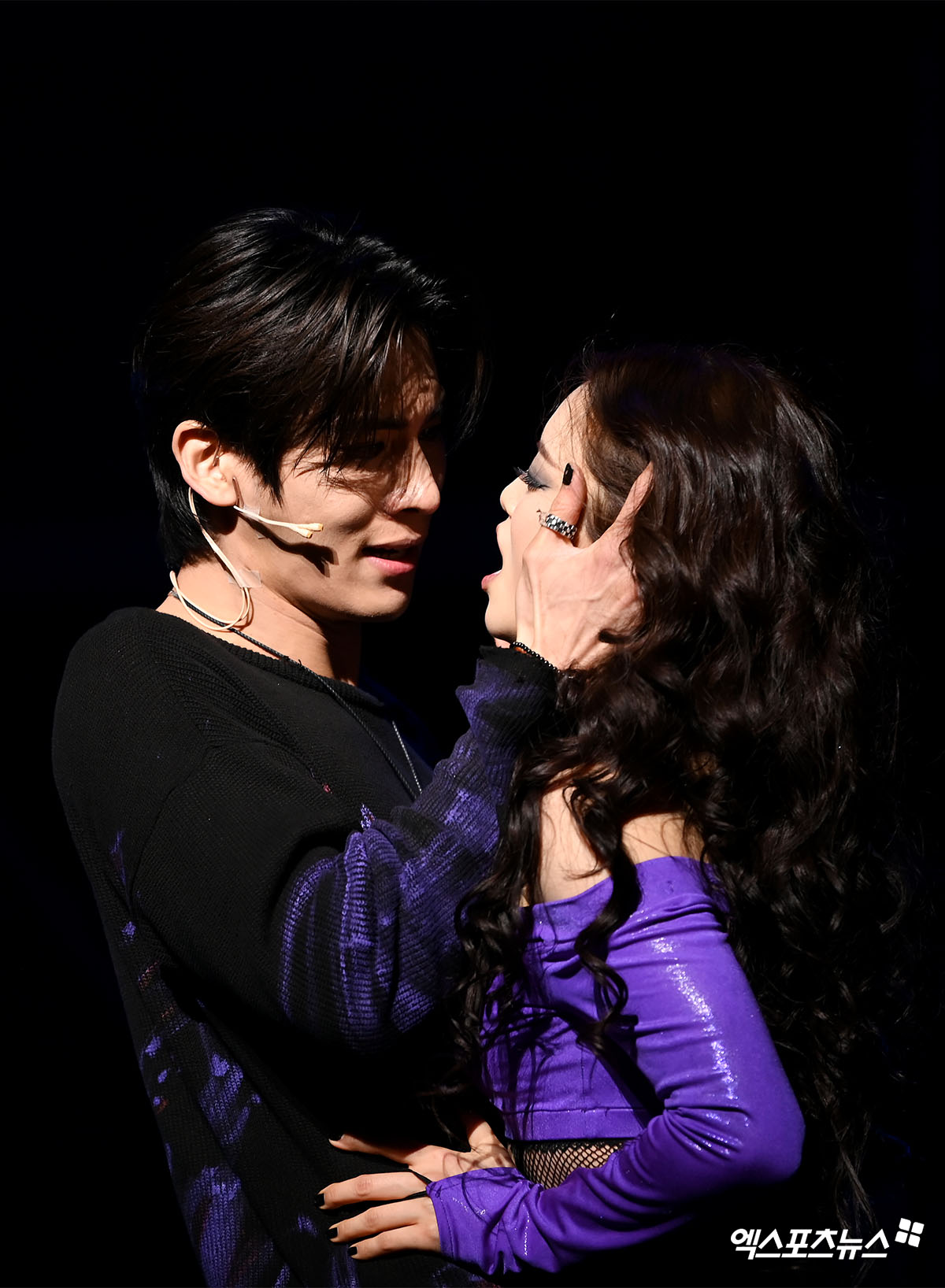 배우 유태양, 김수하가 극 중 한 장면을 시연하고 있다.