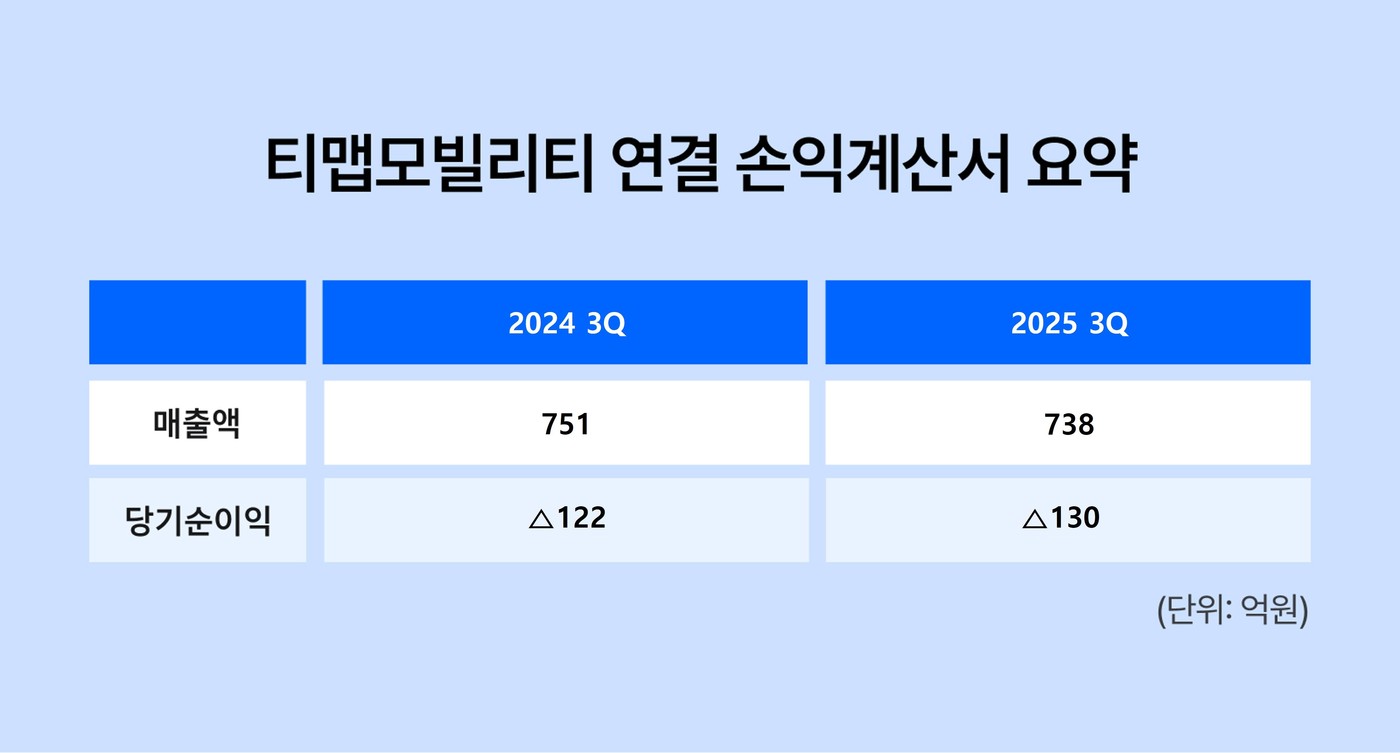 티맵모빌리티는 13일 지주사인 SK스퀘어의 실적 공시를 통해 3분기 실적을 공개했다.