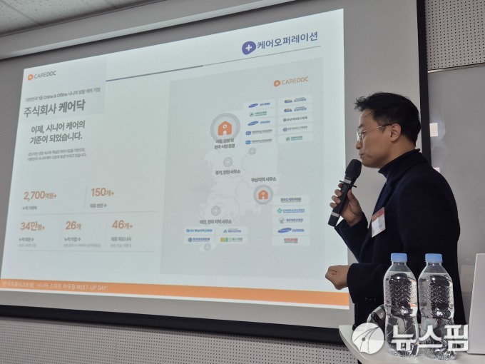 이선열 케어닥 부대표가 13일 '제20회 시니어 스마트 하우징 밋업데이'에서 '케어서비스 기반 시니어 하우징 사업'을 주제로 발표를 진행하고 있다. [사진=정영희 기자] |