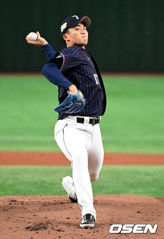 [OSEN=도쿄, 지형준 기자] 류중일 감독이 이끄는 2023 아시아 프로야구 챔피언십(APBC) 대표팀이 18일 오후 일본 도쿄돔에서 대만과 경기를 가졌다.1회말 대만 선발 왕옌청이 역투하고 있다. 2023.11.18 / jpnews.osen.co.kr |