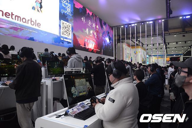 [OSEN=벡스코(부산), 고용준 기자] 현장 이벤트 뿐만 아니라 145대의 시연대가 압도적인 존재감을 뿜어낸다. 자연스럽게 관람객의 발길은 멈추고 시선 역시 사로잡히고 만다. 넷마블이 몰입도를 극대화한 부스로 현장의 주목을 끌고 있다.
