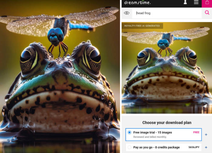 일본 사진경연대회 '제42회 사이타마현 사진 살롱'에 '내 머리야!'(俺の頭だぞ!)라는 이름으로 출품된 이미지(왼쪽)와 해외 이미지 사이트에서 판매되는 AI 생성 이미지. 사진=아사히신문사/전일본 사진연맹 사이타마현 본부 |