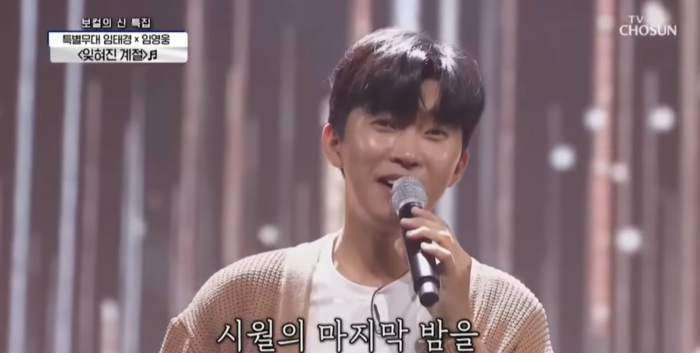 2020년 10월 16일 임영웅 공식 유튜브 채널에 공개된 무대 영상이 지난 13일 조회수 2000만 뷰를 넘어섰다. 해당 영상은 TV조선 ‘사랑의 콜센타’ 보컬의 신 특집 무대로, 임영웅과 임태경이 하모니를 이뤄 ‘잊혀진 계절’ 무대를 선보였다.