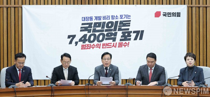 [서울=뉴스핌] 윤창빈 기자 = 송언석 국민의힘 원내대표가 14일 서울 여의도 국회에서 열린 원내대책회의에서 모두발언을 하고 있다. 2025.11.14 pangbin@newspim.com