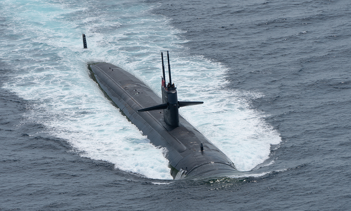 미 해군 오하이오급 원자력추진잠수함이 수면 위를 항해하고 있다. 세계일보 자료사진 |