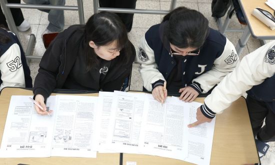 2026학년도 대학수학능력시험이 실시된 13일 오전 서울 용산구 용산고등학교에서 수험생들이 시험 준비를 하고 있다. 사진공동취재단 |
