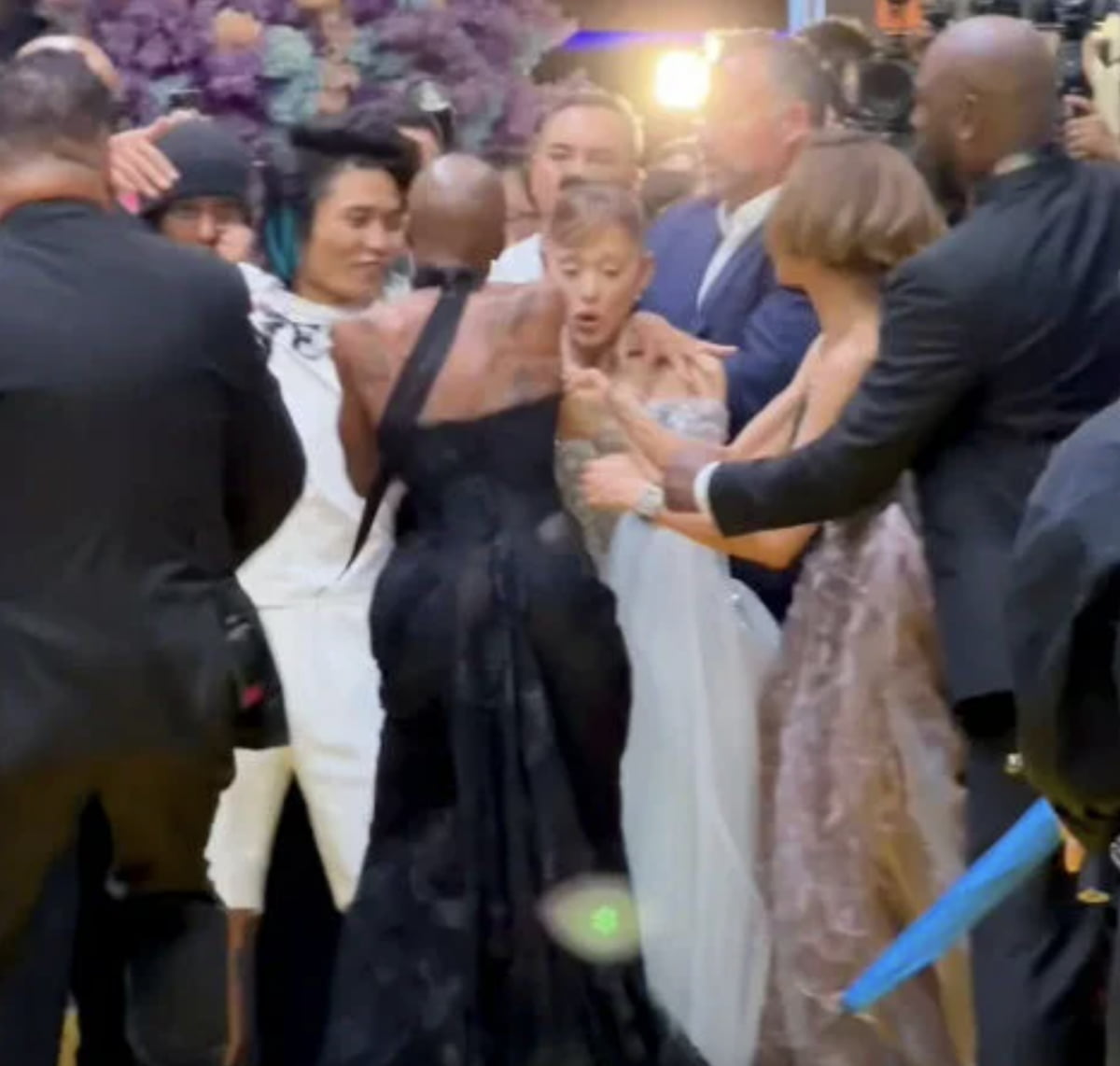 남성은 그란데의 팔을 감싸 끌어당겼고, 그란데는 당황한 표정으로 몸을 피하려 했다. 순간 옆에 있던 배우 신시아 에리보가 몸을 날려 두 사람 사이에 끼어들었고, 곧이어 경호원들이 신속하게 개입해 남성을 제압했다.