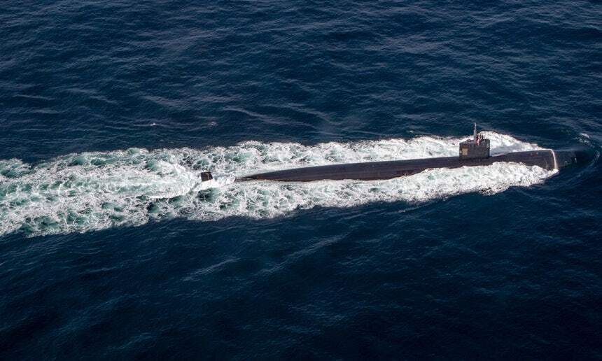미 해군 LA급 핵추진잠수함 산 후안함이 수면 위로 항해하고 있다. 미 해군 제공 |