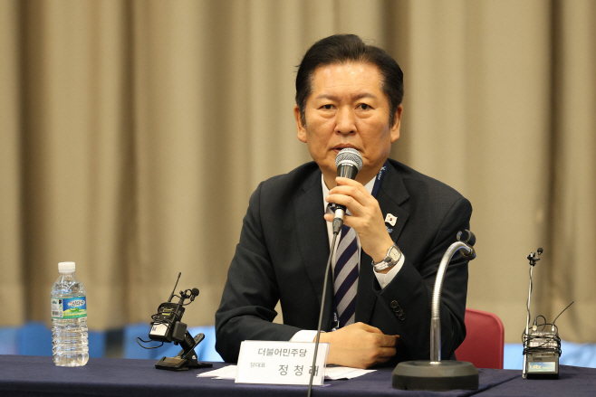 더불어민주당 정청래 당대표가 '지스타 2025' 현장에서 가진 간담회에서 말하고 있다./제공=게임기자단 |