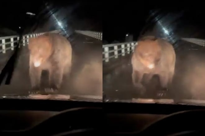 주행 중인 차량에 곰이 달려들고 있는 모습. [X(구 트위터)] |