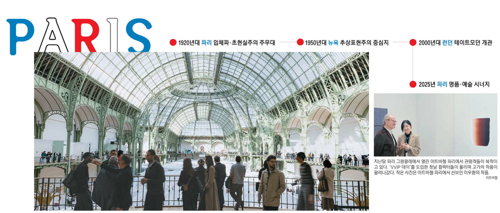 지난달 프랑스 파리를 다녀온 국내 미술 애호가들의 입에서 파리 예찬이 쏟아지고 있다. 이들의 공통적인 의견은 파리가 동시대 예술 중심지로 이토록 빠르게 급부상할 줄 몰랐다는 것이다. 지난달 22부터 26일까지 파리 그랑팔레에서 열린 '아트바젤 파리'는 100년 만에 동시대 예술의 도시로 귀환한 파리의 현주소를 압축적으로 보여줬다는 평가다. 아트바젤을 유치한 지 4년 만에 전 세계 슈퍼리치들의 머릿속에 '10월엔 파리를 가야 한다'는 공식을 새겼기 때문이다.