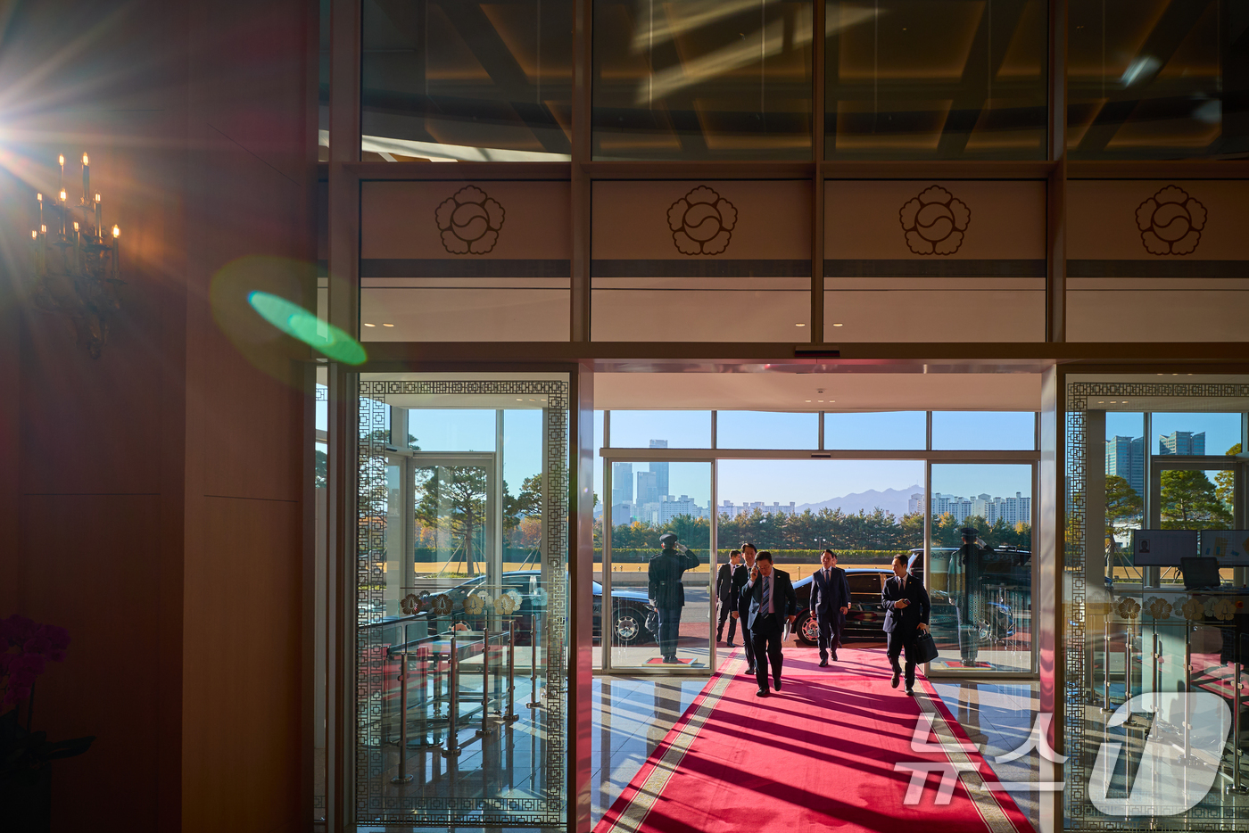 (서울=뉴스1) 허경 기자 = 이재명 대통령이 14일 서울 용산 대통령실 청사로 출근하고 있다. (이재명 대통령 SNS. 재판매 및 DB 금지) 2025.11.14/뉴스1