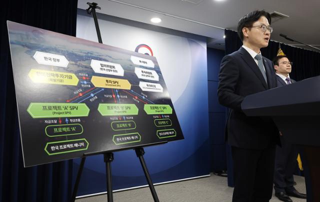 김정관 산업통상부 장관이 14일 서울 종로구 정부서울청사에서 한미 관세협상 팩트시트 및 MOU 관련 브리핑을 하고 있다. 연합뉴스 |