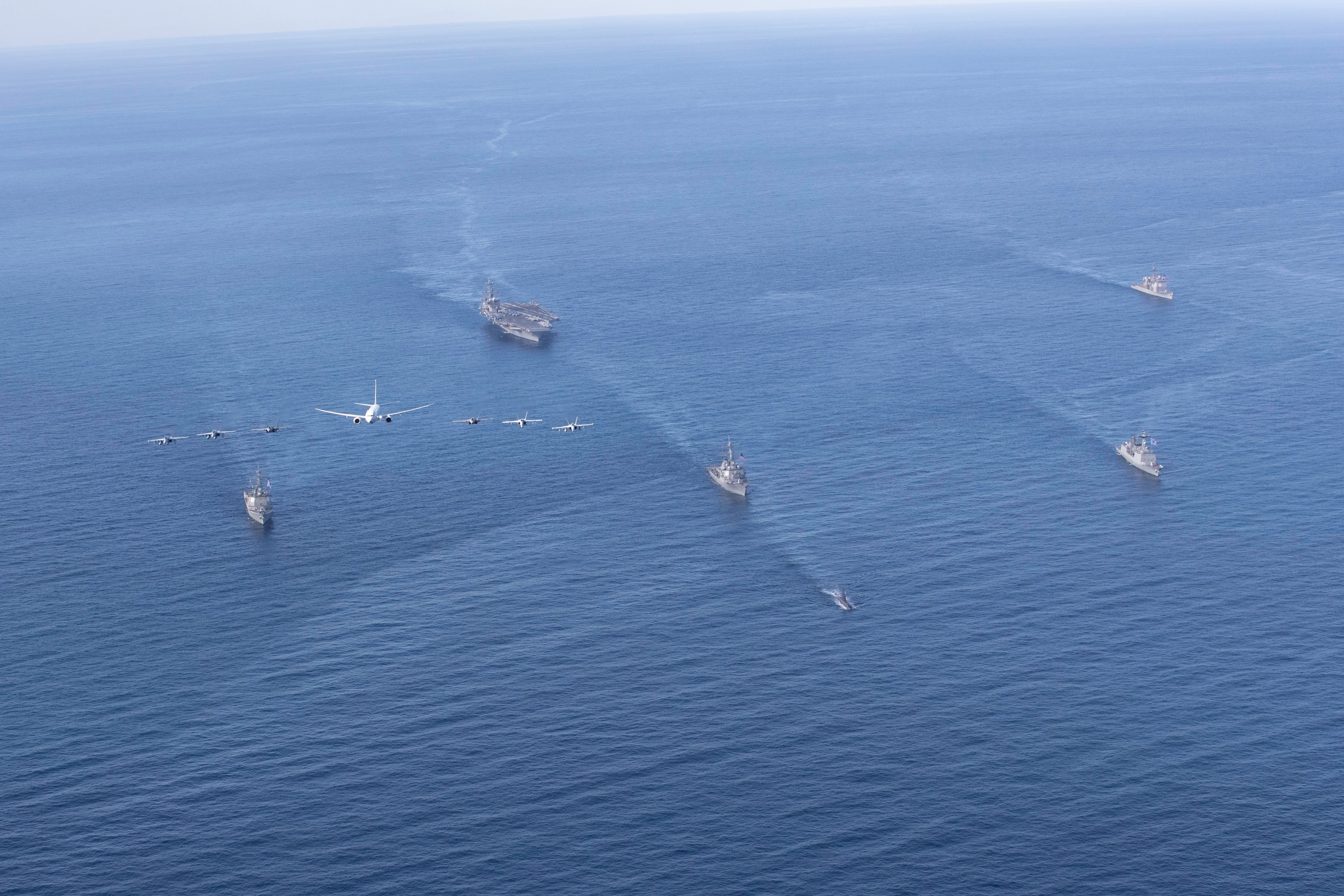 한미 해군은 11일부터 14일까지 동해 해상에서 미군 핵추진 항공모함이 참여한 가운데 연합 해상훈련을 실시했다. 한국 해군에선 7천600t급 이지스구축함인 율곡이이함과 서애류성룡함, 4천400t급 구축함인 왕건함과 강감찬함 등 함정 7척과 해상작전헬기(Lynx), 해상초계기 P-3와 P-8 등 항공기 3대가 참가했다. 미국 해군에선 항공모함 조지워싱턴함과 순양함 로버트스몰스함, 이지스구축함인 밀리우스함과 슈프함 등 함정 4척, 항공모함 함재기, 해상초계기(P-8) 등이 참가했다./국방부 |