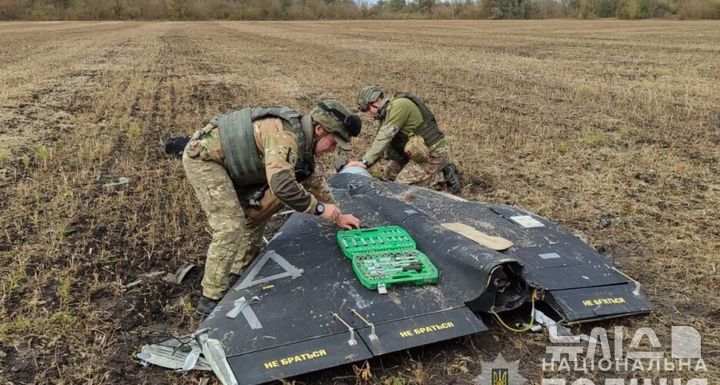 [서울=뉴시스]우크라이나 수미 지역에서 지난달 발견된 러시아제 게란-2/샤헤드-136 드론.(출처=우크라이나 국경수비대, NK 뉴스에서 재인용) 2025.11.15. |
