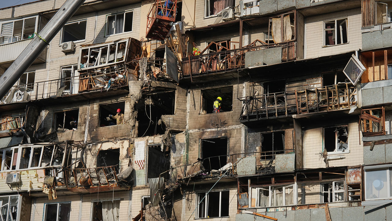 ▲ 러시아의 공격으로 피해를 입은 우크라이나 키이우 건물