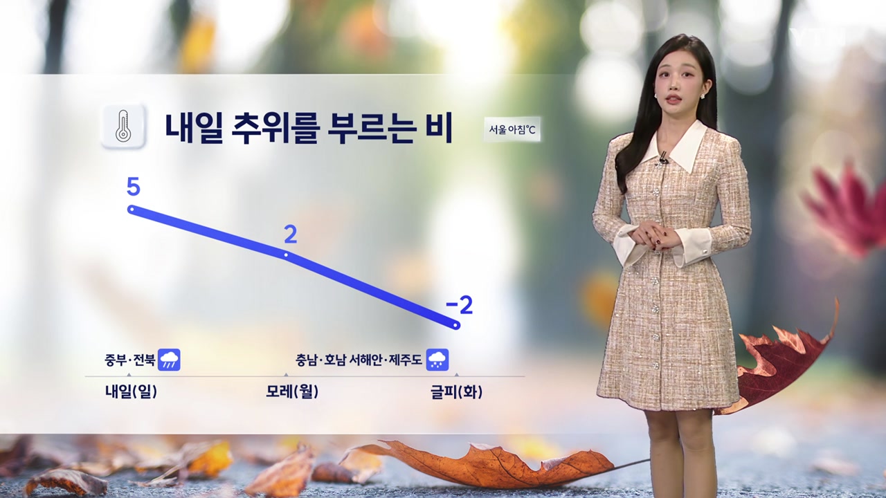 비가 내린 뒤 모레 서울 아침 기온은 2도, 글피는 영하 2도까지 내려가겠고요.
