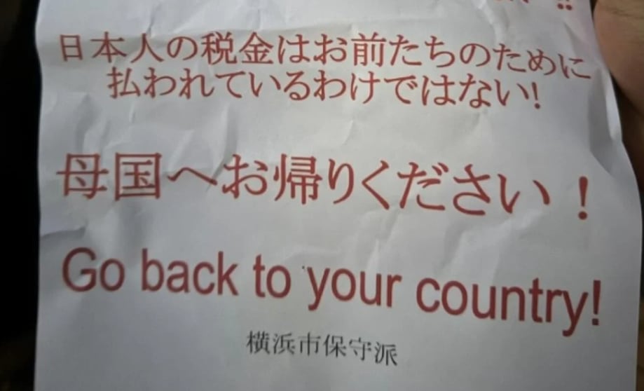 일본 요코하마에 사는 말레이시아 출신 외국인 주민의 집과 차량에 외국인 혐오 메시지가 붙은 사실이 알려지며 논란이 일고 있다.