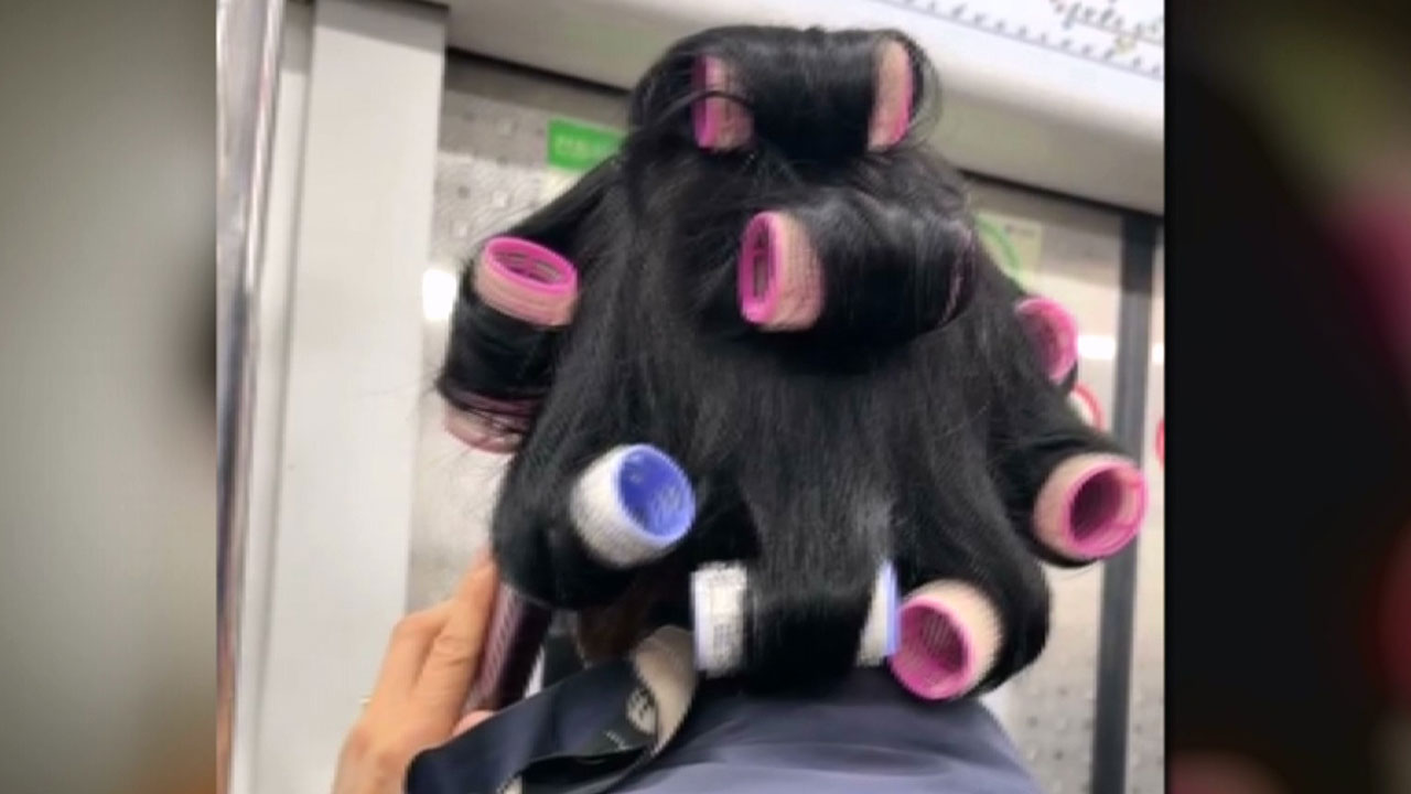 제보 영상에는 한 여성이 머리 오른쪽 왼쪽 위아래 곳곳에 헤어롤을 돌돌 말고 앉아 있는 모습이 담겼습니다. 마치 미용실에서 갓 스타일링을 마친 듯 머리 전체에 십여 개의 헤어롤이 꽉 고정돼 있었습니다.