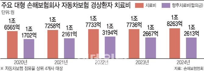보험금 누수에 대한 부담은 이미 손해율 악화로 직결되고 있다. 주요 손보사들은 올해 3분기 자동차보험 손익이 일제히 적자로 돌아서거나 크게 악화했다. 삼성화재는 3분기 자동차보험 부문에서 648억원의 분기 적자를 기록하며 누적 기준으로도 341억원 손실을 냈다. 자동차보험 합산비율은 100%를 넘어서는 등 손익분기점을 밑돌았다. KB손해보험도 누적 기준 442억원의 적자를 냈고 합산비율도 100%를 웃돌았다. 현대해상과 DB손해보험도 비슷한 흐름을 보일 것으로 업계는 보고 있다. 업계 전반에서는 경상환자 치료비가 최근 수년간 꾸준히 늘며 중상환자보다 높은 증가율을 보이고 있다는 점을 손해율 악화의 주요 요인으로 지적한다. 특히 한방 장기 치료의 비중 확대가 보험금 증가세를 끌어올렸다는 분석에 무게가 실린다.