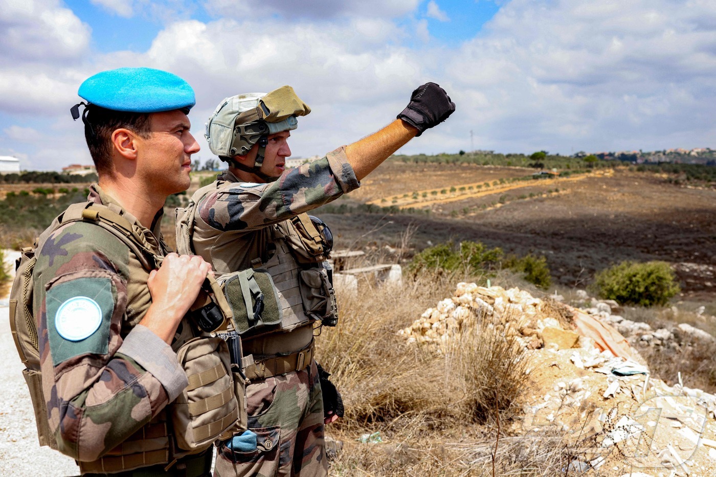 27일(현지시간) 이스라엘 북부와 국경을 맞댄 레바논 남부의 크파르 킬라 마을에서 유엔 레바논 임시군(UNIFIL) 기동예비군 사령관 아르노 드 콩시 대령(왼쪽)과 한 장병이 마을을 둘러보고 있다. 2025.08.27 ⓒ AFP=뉴스1 ⓒ News1 김지완 기자 |