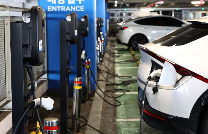 서울 시내 한 쇼핑몰에 설치된 전기자동차 충전소 모습. [사진 | 뉴시스] |