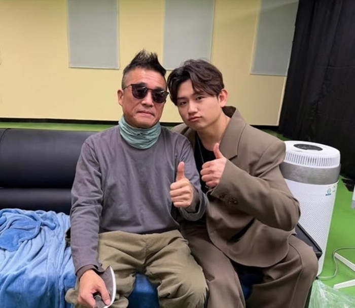 사진 속에서 우디는 김건모와 나란히 앉아 같은 포즈를 취하며 밝은 모습을 드러냈다. 평소 김건모를 자신의 우상으로 언급해온 우디는 그를 다시 만난 듯 여전히 반가움을 감추지 못한 모습이다.