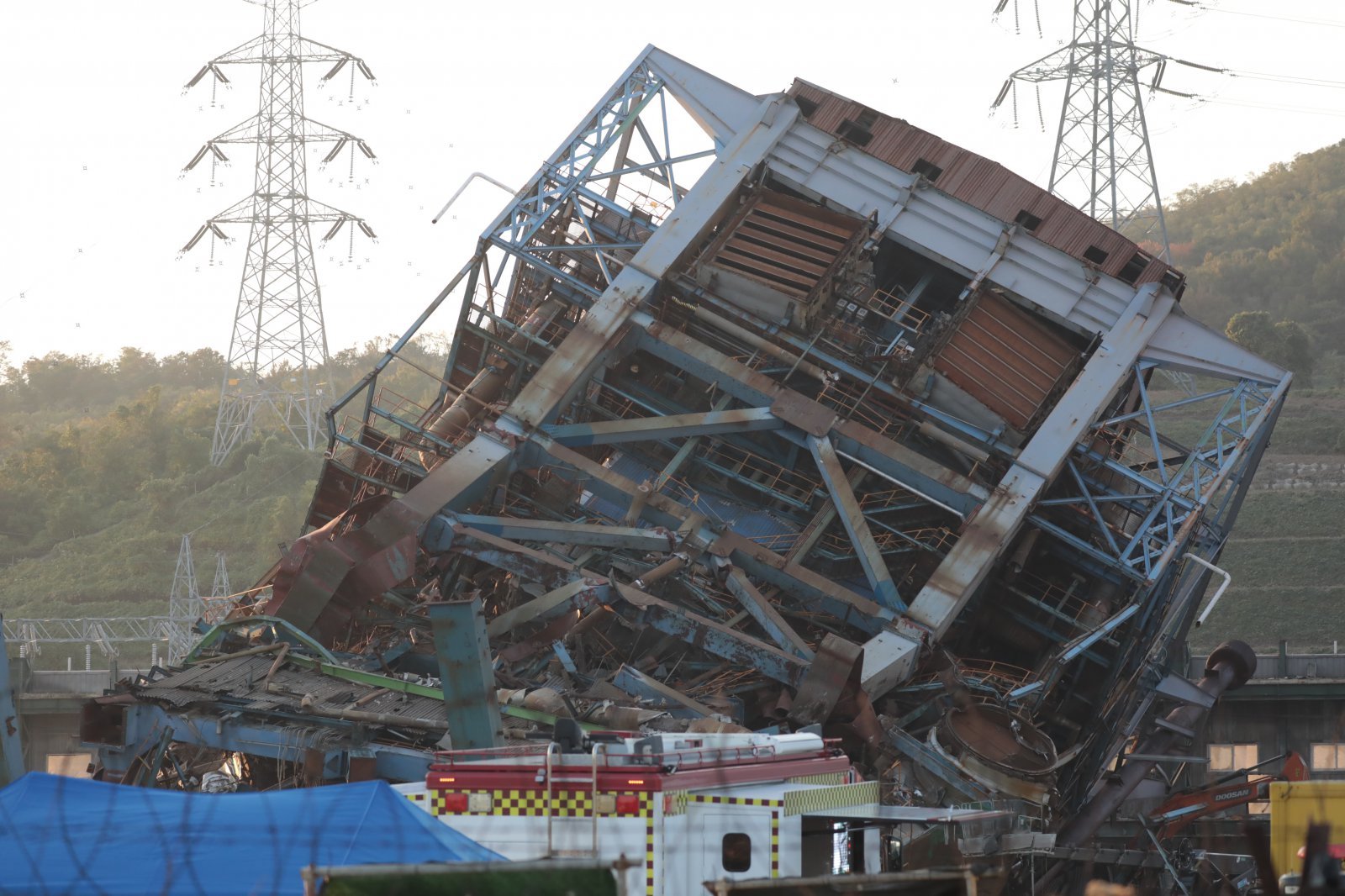 지난 6일 오후 울산 남구 용잠로 동서발전 울산화력발전소에서 보일러 타워 붕괴 사고가 발생해 소방 당국이 구조 작업에 나서고 있다. 뉴스1 |