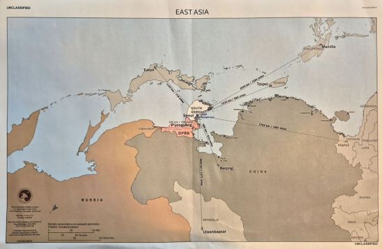 뒤집힌 지도는 한반도를 중심으로 남북을 180도 뒤집은 것으로, 북·중·러는 물론 일본·대만·필리핀까지 폭넓게 담고 있는 지도다. 앞서 주한미군이 올 초 내부교육용으로 마련한 이 지도는 주한미군이 대(對)중국 견제 등으로 역할을 확대하려는 구상을 담은 것이란 평가다.