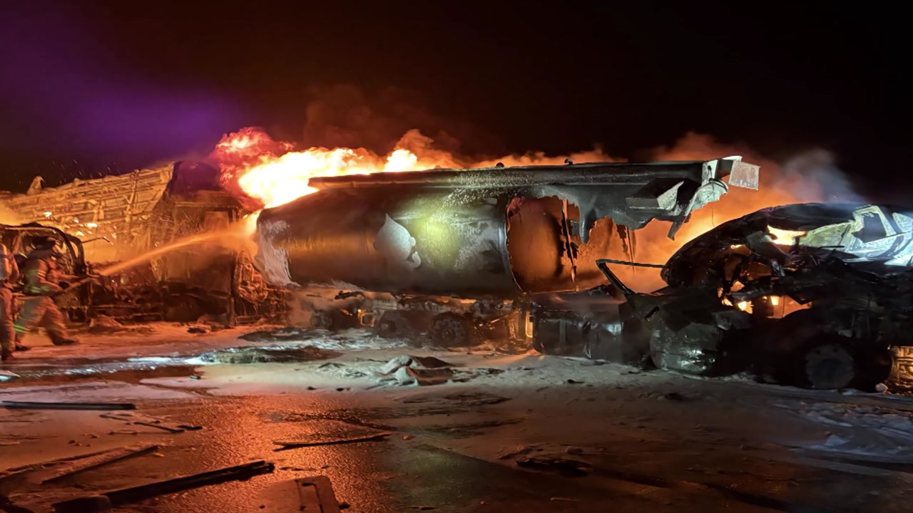 상주영천고속도로서 유조차가 대형 화물차 들이받아