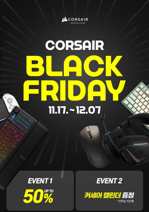 [디지털포스트(PC사랑)=남지율 기자] 커세어(지사장: 박재천)는 연중 최대 쇼핑 시즌인 블랙프라이데이를 맞아 오는 11월 17일부터 12월 7일까지 풍성한 혜택을 전하는 '커세어 블랙프라이데이 프로모션'을 진행한다고 밝혔다.